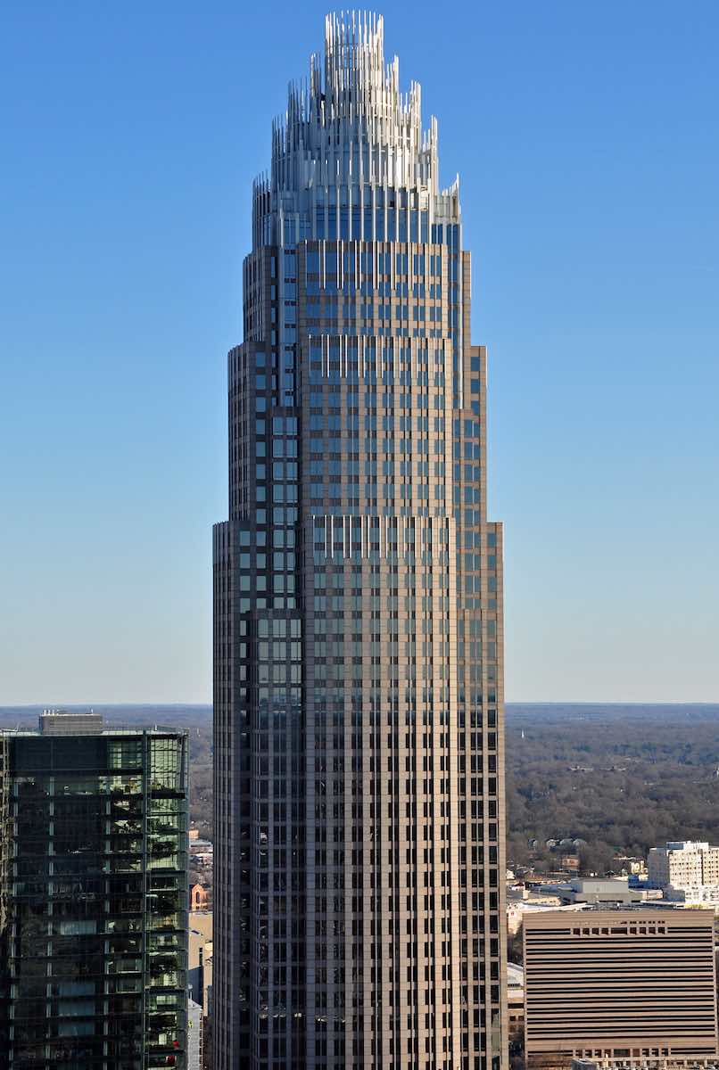 Two years before Society Center in Cleveland, Cesar Pelli designed a very similar tower for the Bank of America's headquarters in Charlotte, North Carolina. From a distance, a Clevelander heading south on I-77 might easily have a momentary sense of coming home when approaching the "Queen City." | Creator: James Willamor | Date: February 12, 2011 | Source: Flickr, CC BY-SA 2.0Download Original File