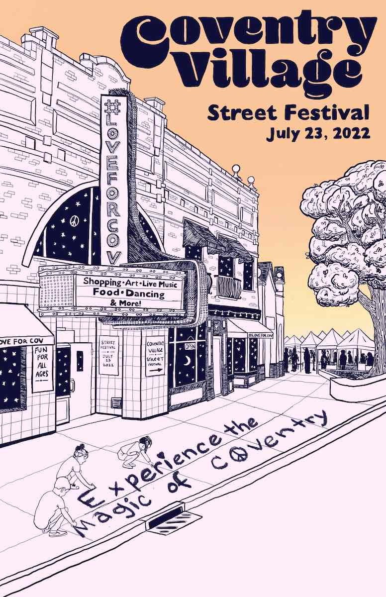 The inaugural Coventry Street Festival was intended to build on a series of popular community events held on the street in recent summers, including sidewalk sales and Final Fridays programs. Although the festival is not a resumption of the old Coventry Street Fair, it draws some of its inspiration from that legacy. | Creator: Chris Dant in collaboration with Zygote Press | Date: 2022 | Source: Coventry Village Special Improvement DistrictDownload Original File
