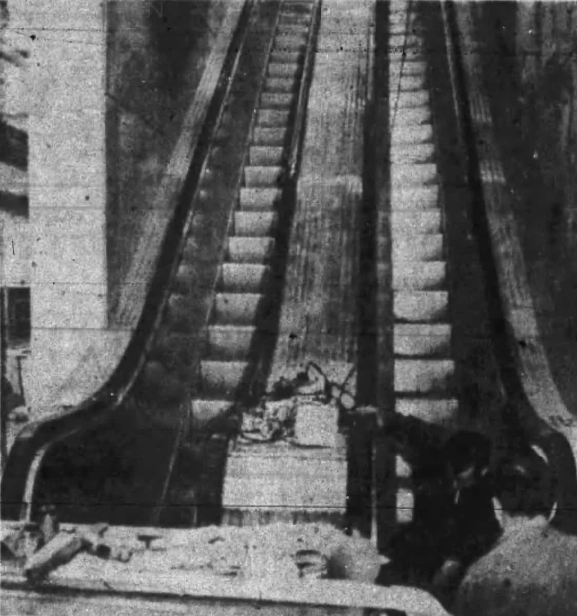 One of the touted features of the new Euclid Avenue Office was its "electric stairway" that connected the street-level lobby with the second-floor lobby. The escalators, a feature long common inside department stores, were reportedly the first in any Cleveland bank. | Date: October 12, 1948 | Source: Cleveland PressDownload Original File