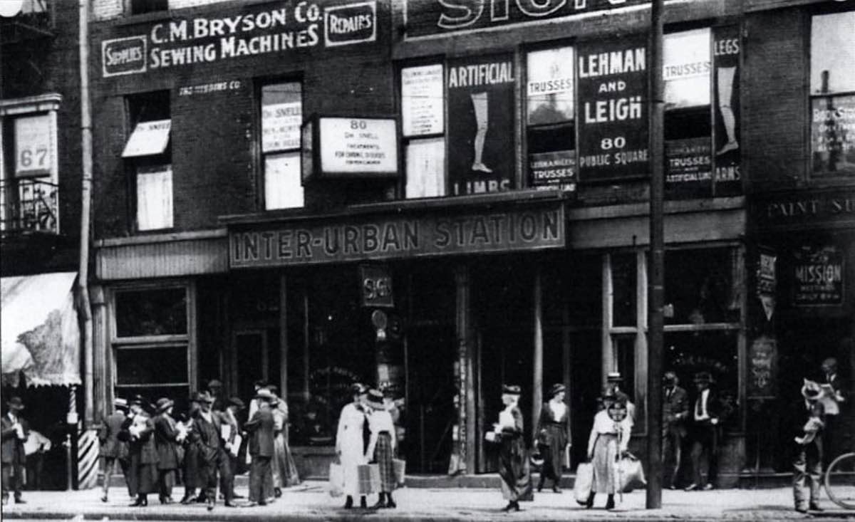 Early LSE Station on Public Square ID: 12889 | This file appears in: Lake Shore Electric Railway The LSE maintained this ticket office and station in a storefront at 47 Public Square (pre-1906 address) from 1904 to 1916. | Date: ca. 1910 | Source: Thomas Patton Download Original File SourceThomas PattonDateca. 1910 "Early LSE Station on Public Square" appears in: Lake Shore Electric Railway