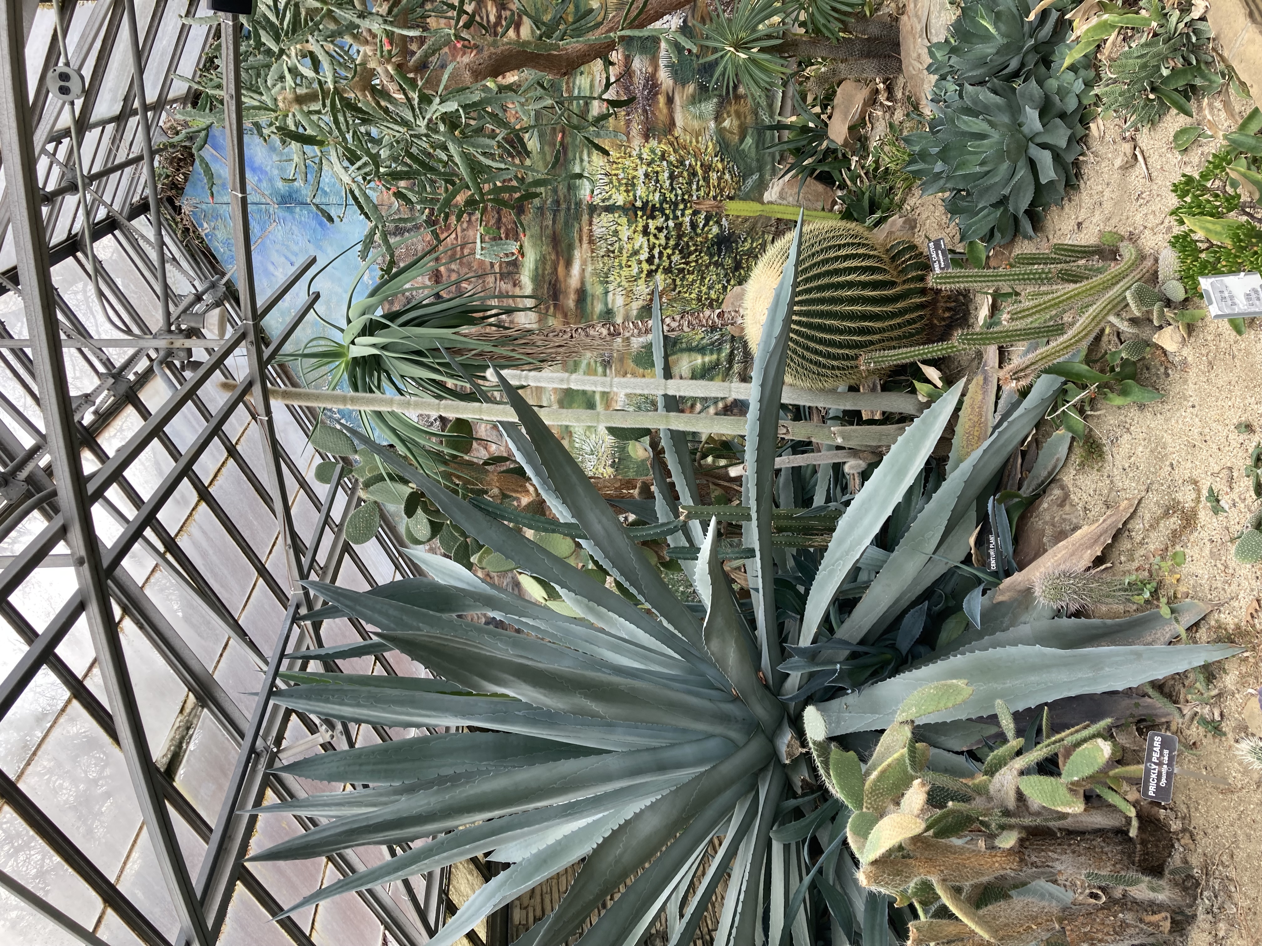 A giant century plant dominates the collection of cacti and succulents that fill the Cacti Showhouse. Dedicated in 1946, this garden has a background painting of a desert scene. | Date: December 7, 2023 | Source: J. Mark SoutherDownload Original File