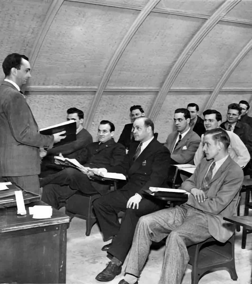 To accommodate increased enrollment due to the GI Bill, Fenn College needed more classroom space than Fenn Tower could provide. The college bought a series of temporary modular buildings, called quonset huts, from the U.S. military in which classes were held. | Date: ca. 1949 | Source: Cleveland Memory, Michael Schwartz Library Special Collections at Cleveland State UniversityDownload Original File