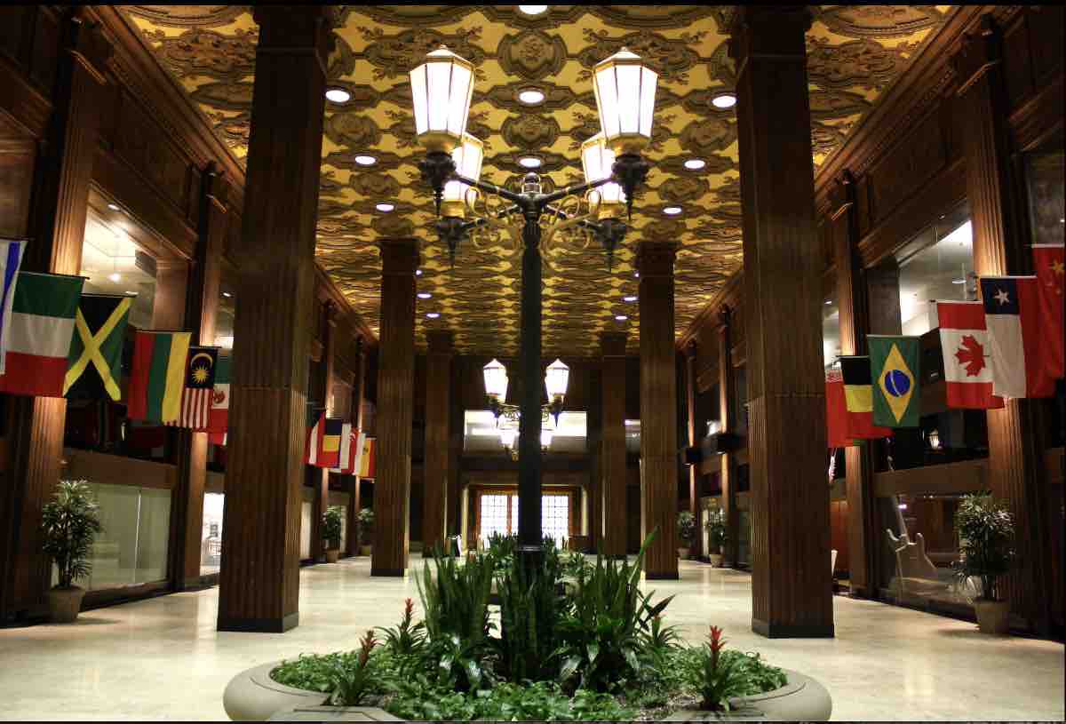 In 1985-86, RESS Realty renovated the three office buildings and unified them for marketing purposes as Landmark Office Towers with the idea of offsetting the sudden loss of Standard Oil Co. of Ohio (Sohio), which moved most of its operations to its new headquarters tower at 200 Public Square. The buildings' owners also restored the old Midland Bank lobby, which Sohio had encased in modern materials in 1970 when it took the space vacated by Central National Bank. RESS Realty's leaders realized that the Union Terminal Group developers, the Van Sweringens, had no place in the city commemorating their influence. Therefore, they named the space the Van Sweringen Arcade, a name that evokes other "interior streets" in Downtown Cleveland. | Creator: © Timothy Kilkenny | Date: March 3, 2011 | Source: Flickr