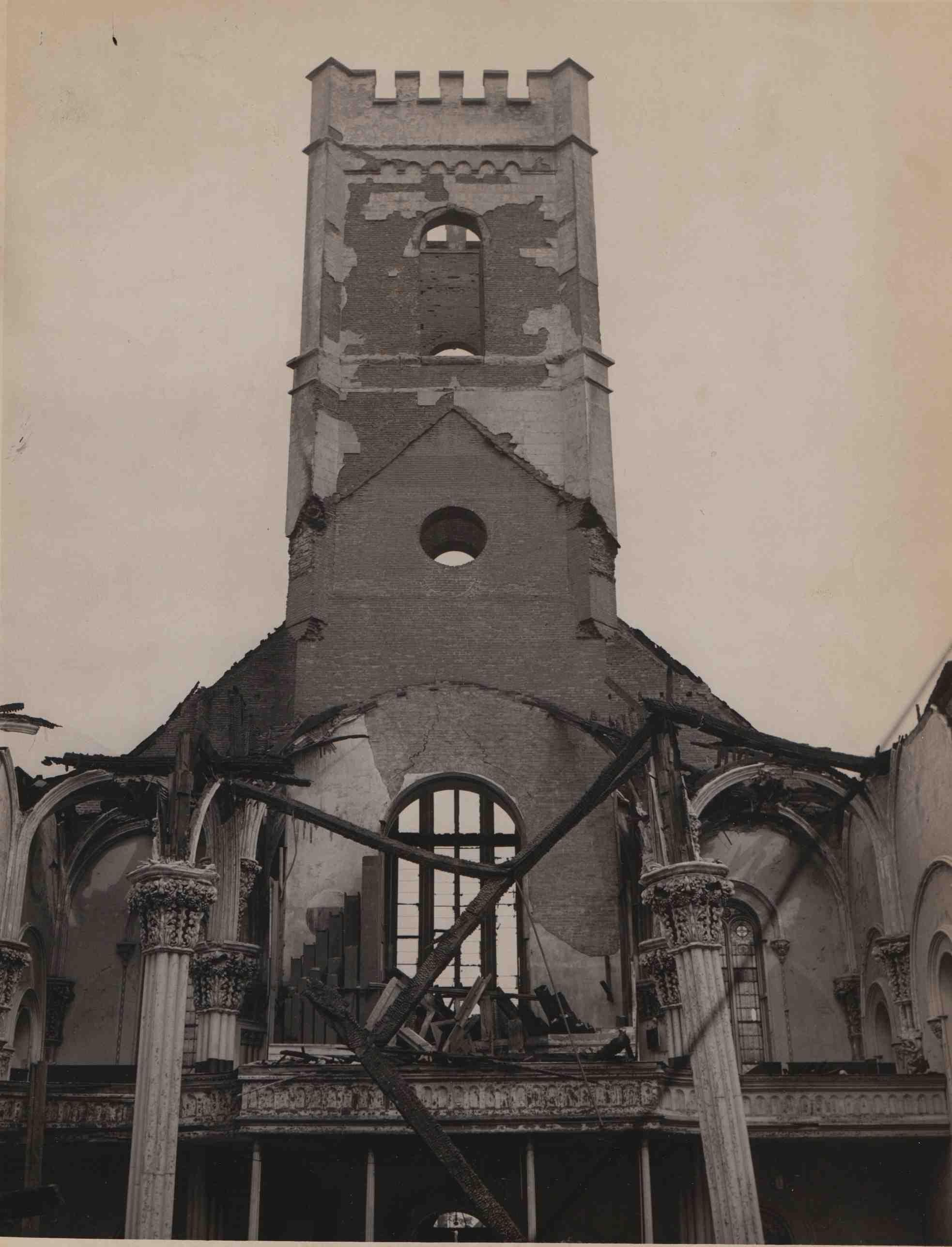 Another view of the aftermath of the fire of December 1943 shows the structural damage done to St. Malachi Church.