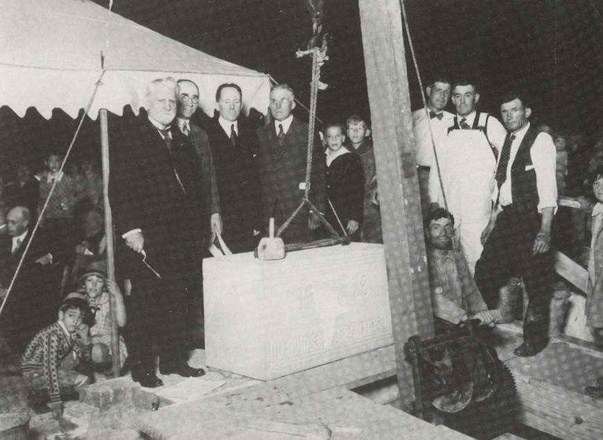 The cornerstone of First Baptist Church was laid in place on June 12, 1928. A box containing records from both the First Baptist Church of Cleveland and Baptist Church of the Heights were mortared in place during the event. | Date: 1928 | Source: City of Shaker HeightsDownload Original File