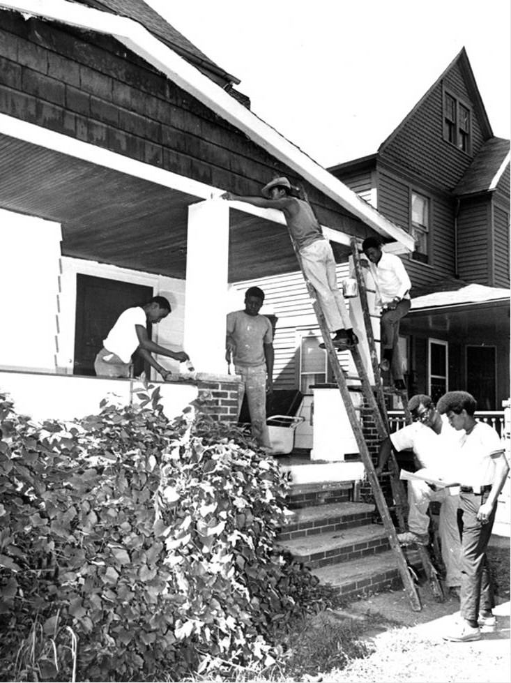 Home Rehabilitation in Fairfax, 1969 ID: 6195 | This file appears in: Fairfax Neighborhood "Slum Rehabilitation, 2244 East 89th St. youths working on home rehabilitation for Fairfax Foundation" - photo verso. Image courtesy of Cleveland State University. Special Collections. Cleveland Memory Project Download Original File "Home Rehabilitation in Fairfax, 1969" appears in: Fairfax Neighborhood