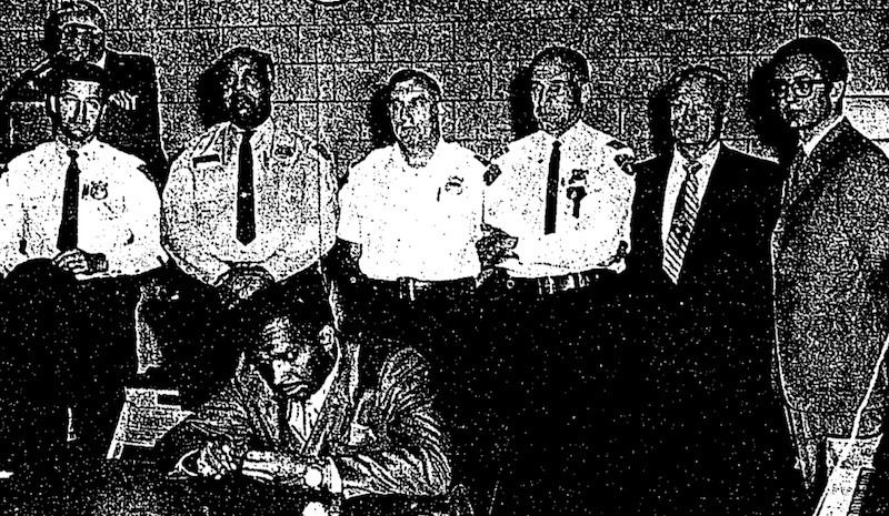 Fairfax Security Project Members, 1971 ID: 6197 | This file appears in: Fairfax Neighborhood Intending to curb crime in the Fairfax neighborhood, community members established and funded their own security patrol. Hiring off-duty police officers, the community kept the project running for most of the 1970s. Call and Post, June 19, 1971. Image courtesy of ProQuest Download Original File "Fairfax Security Project Members, 1971" appears in: Fairfax Neighborhood