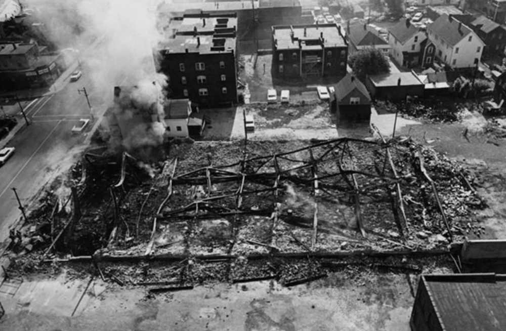 Following the fire that consumed the onetime Pla-Mor during the Hough Uprising, nothing remained but twisted steel and charred ruins. | Date: 1966 | Source: Cleveland Memory, Cleveland State University Library Special CollectionsDownload Original File