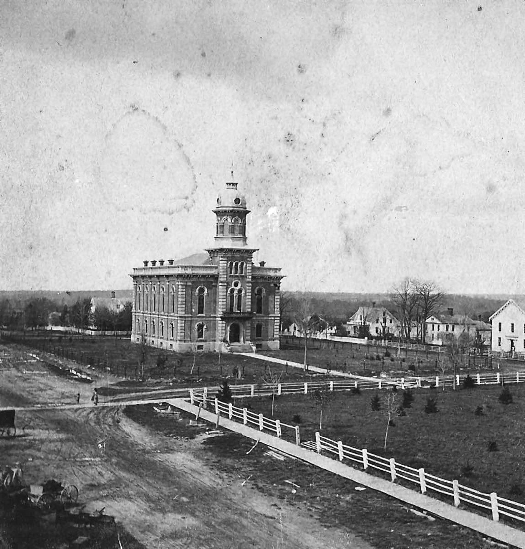 After the fire, Chardon's citizens refused to give up. The county quickly issued a contract to Messrs, Herrick & Simmonds of Cleveland to rebuild the business district and courthouse. A newspaper article from December 4, 1868, reported on the rebuilding of Chardon: “When the improvements are completed, Chardon will become one of the handsomest villages in the State.” Another newspaper article from January 29, 1869, raved about “Chardon rising from her ashes. A disaster transformed into a blessing.” By this time, six months after the disaster, Chardon had already established a building committee, secured funding, and had built Union Block (now Main Street) on the former ruins, as well as the Randall Block (now South Hambden Street), a new section that expanded the business district around the square. The highlight of rebuilding was the courthouse, now located at the head of the public square.