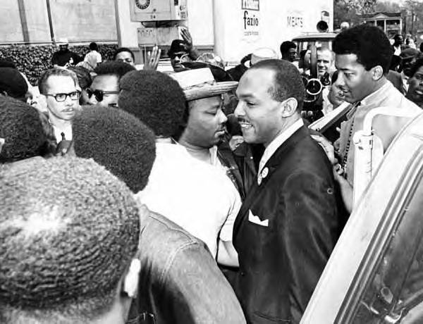 Reverend A.D. King (pictured in the straw hat) and Mayor Stokes in the parking lot, during the the 1968 Poor People's March. | Creator: Zahn, Glenn | Date: 05/15/1968 | Source: Cleveland Memory Project | Rights: http://www.clevelandmemory.org/copyright/Download Original File