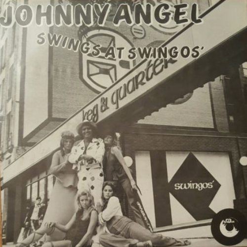“Johnny Angel” Wendell was the guitarist, singer and leader of the Thrills, a “hippybilly” country pop group. On the cover of a promotional LP issued in the mid 1970s, he poses with his entourage in front of Swingos Keg & Quarter. | Source: JoDon RecordsDownload Original File