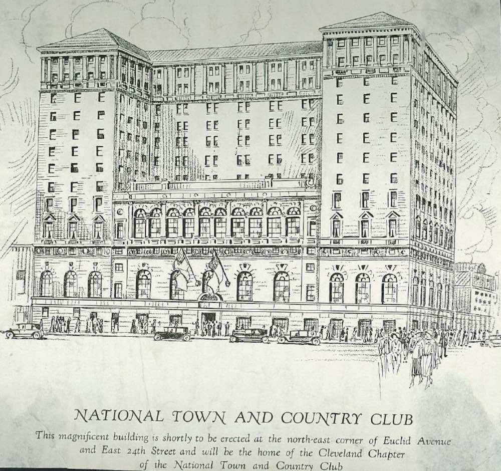 This plan shows a considerably different design idea for what evolved into the Art Deco-style National Town and Country Club, which used the resulting building only briefly before folding in the Great Depression. | Date: 1927 | Source: Town Topics, Cleveland Public LibraryDownload Original File