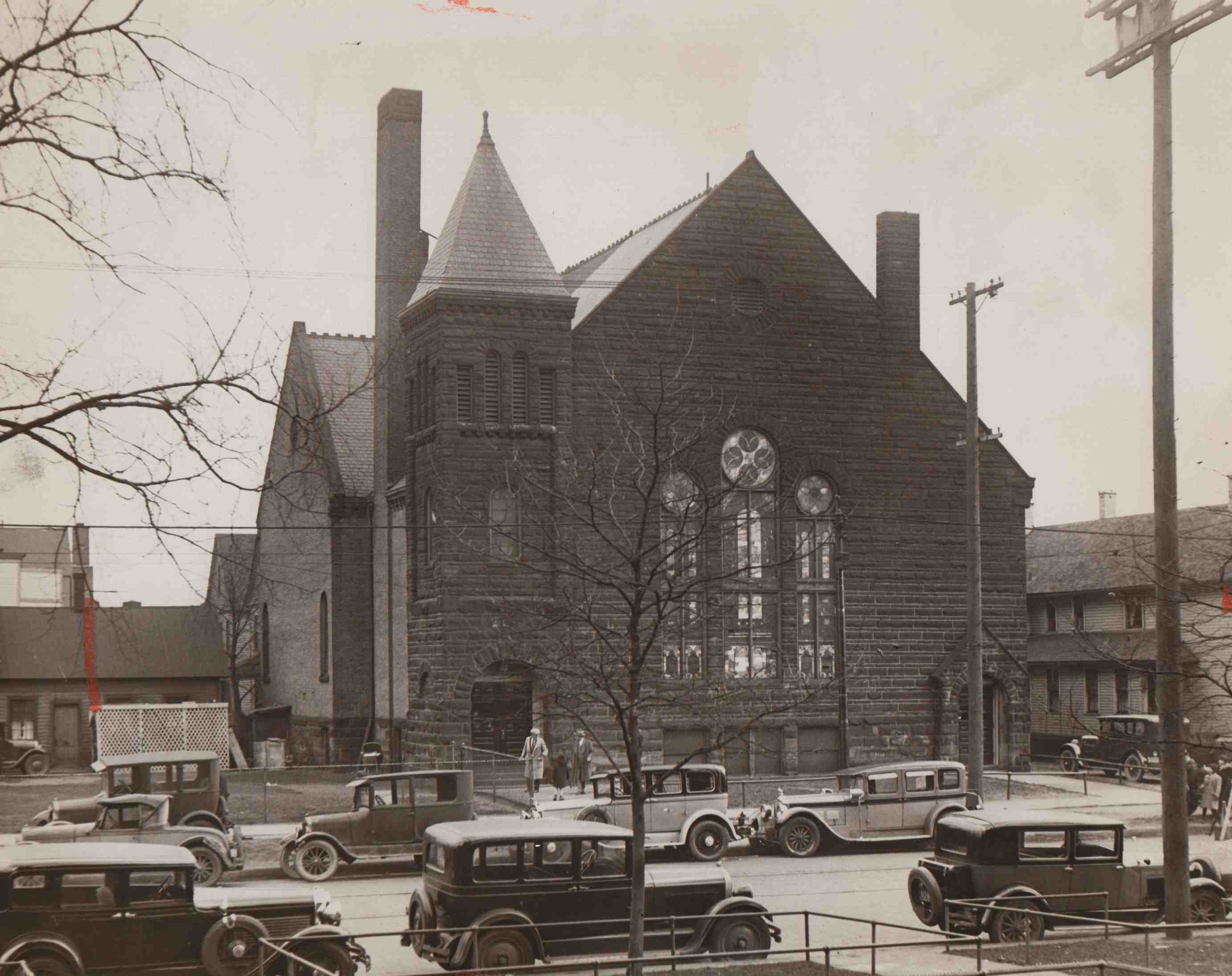 This image from 1929 shows the original church, much of which was destroyed by fire in 1933. | Date: 1929 | Source: Cleveland Memory, Cleveland State University Library Special CollectionsDownload Original File