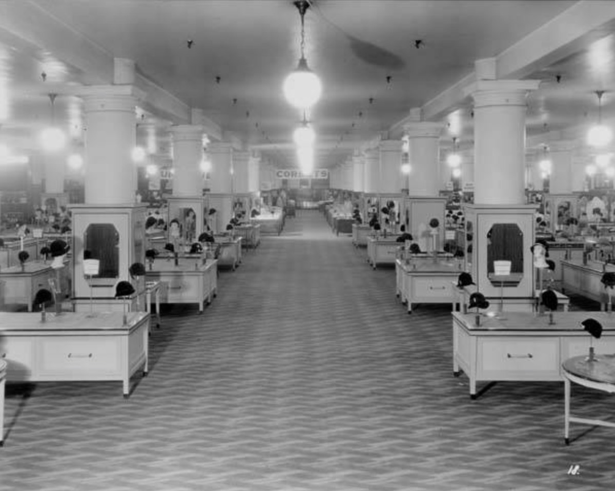 The ladies millinery (hat) department at the May Company was extensive. Special features of the department included a private room where women in mourning could be fitted and a "French room" where hats for gala events were displayed. | Source: Cleveland Memory Project, Cleveland State University Library Special CollectionsDownload Original File