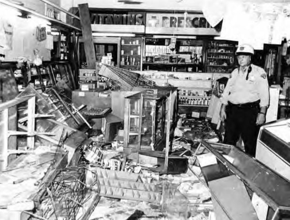 Long-held community grievances over the practices of local merchants turned to looting, vandalism and arson during the Hough uprisings of 1966. While exceptions occurred, businesses with a reputation for mistreating or overcharging local residents, paying low wages to employees, and raising prices each month to profit from government assistance payments were targeted. | Source: Cleveland Memory Project, Cleveland State University Library Special Collections