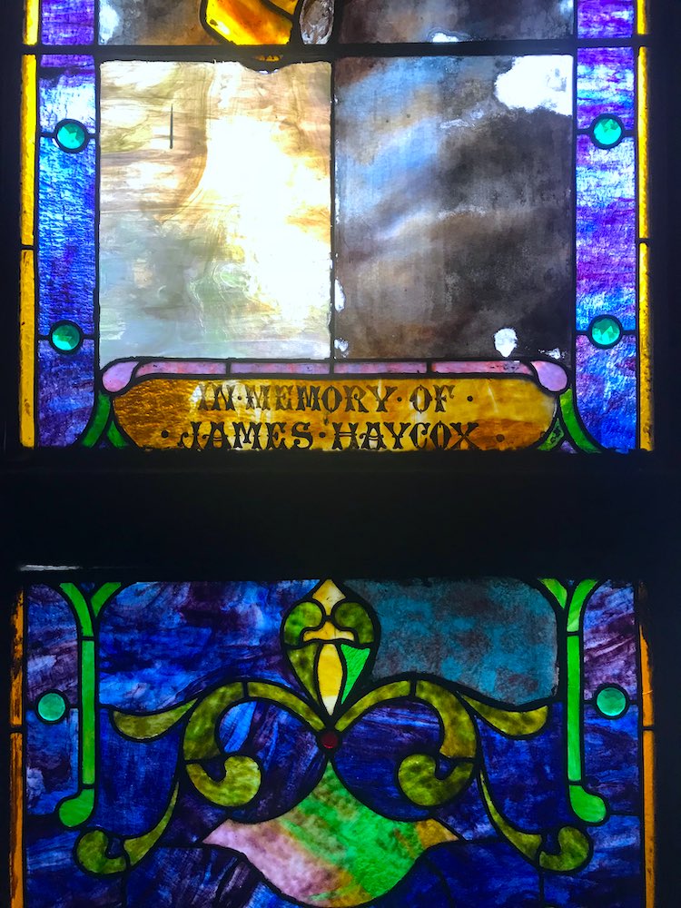 Detail of James Haycox Window ID: 10433 | This file appears in: Christ Our Redeemer A.M.E. Church Creator: J. Mark Souther | Date: October 3, 2018 Download Original File CreatorJ. Mark SoutherDateOctober 3, 2018 "Detail of James Haycox Window" appears in: Christ Our Redeemer A.M.E. Church