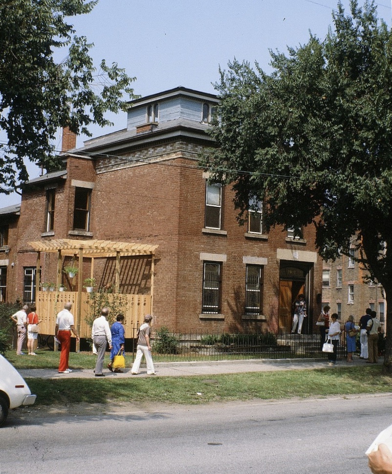This photo was taken on August 11, 1980, during the Sixth Annual Ohio City House and Garden Tour, when the rehabilitated Ball-Wilson house was one of the featured houses on that year's tour. | Source: David Ellison, from the John Katinsky CollectionDownload Original File
