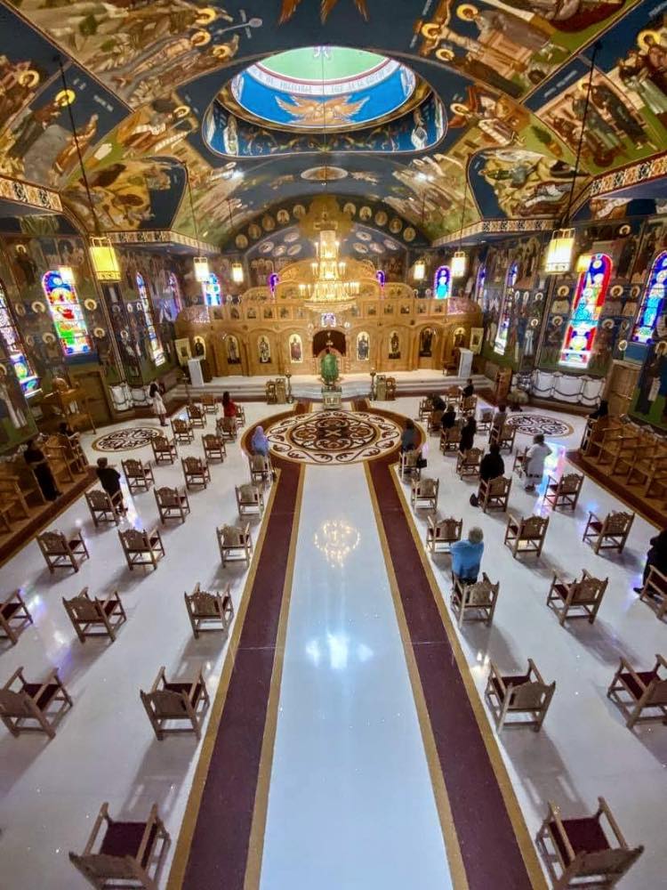 Interior of St. Sava's in Parma ID: 10510 | This file appears in: Saint Sava Serbian Orthodox Cathedral This view of the church interior from the choir loft shows the floor renovations that were finished in early 2020, in Byzantine style. | Creator: Olivera Bogdanovic | Date: 2020 Download Original File CreatorOlivera BogdanovicDate2020 "Interior of St. Sava's in Parma" appears in: Saint Sava Serbian Orthodox Cathedral