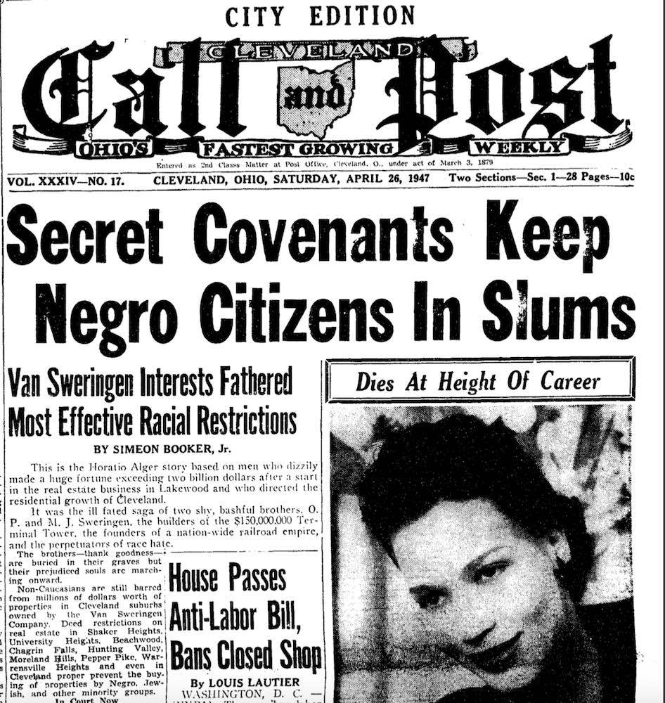 When neighborhood slums were torn down, they often displaced their tenants, many of whom were Black. The new public housing projects like Cedar Central and the Cedar Central Extension did not let in Black families for years and when they did integrate it was at a much lower rate. This news headline from Call and Post, a leading Black newspaper in Cleveland, uncovered what many knew to be correct, that Black families were being excluded even from government funded public housing. Meanwhile, Blacks also faced backlash when they attempted to move into many outlying neighborhoods and suburbs that real estate brokers and residents deemed "all-white." In such a climate, the unfortunate result was displacement into other inner-city neighborhoods where overcrowding replicated slum conditions. | Date: April 26, 1947 | Source: Call and PostDownload Original File
