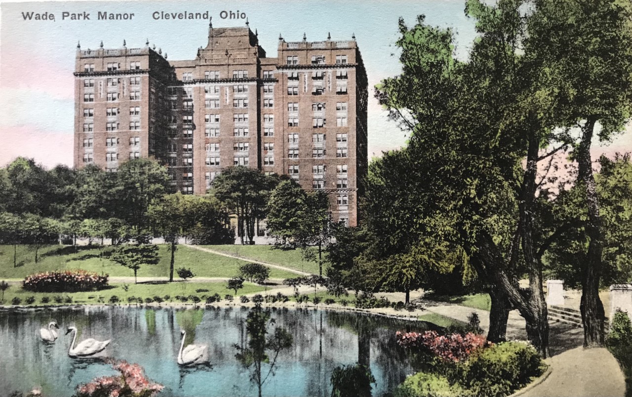 Wade Park Manor Postcard ID: 10620 | This file appears in: Wade Park Manor A picturesque image of Wade Park Manor. The postcard shows the parklike setting and lagoon that were located right across from the entrance to the hotel. | Date: ca. 1920s | Source: J. Mark Souther Postcard Collection Download Original File SourceJ. Mark Souther Postcard CollectionDateca. 1920s "Wade Park Manor Postcard" appears in: Wade Park Manor