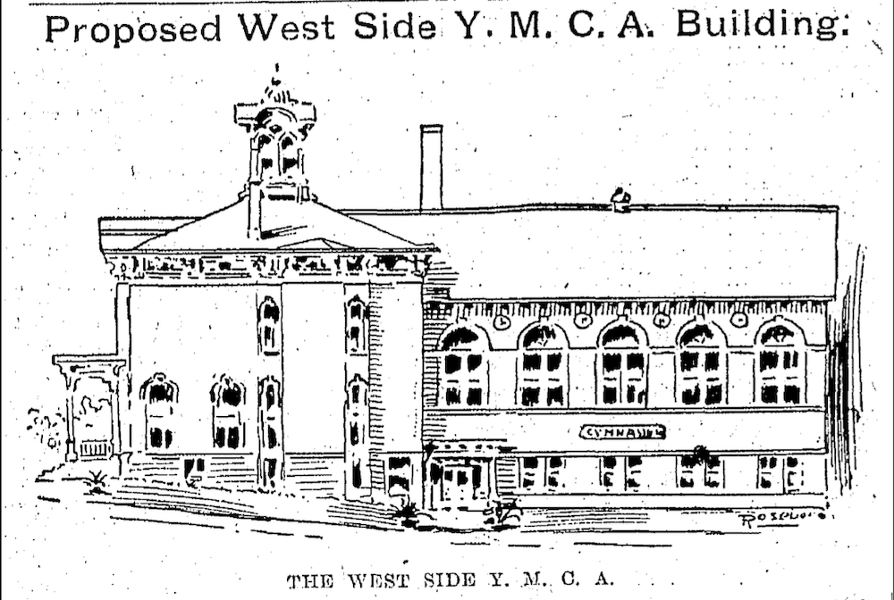In 1901, the Ingham house with a gymnasium addition constructed onto its rear, opened as the West Side YMCA. This sketch, presenting a view of the house and addition from Duane (West 32nd) Street, appeared in the May 4, 1901, Plain Dealer. | Source: Cleveland Public Library, Digital Newspaper CollectionDownload Original File