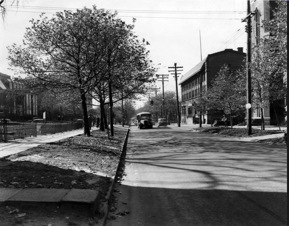 This 1935 photo of Franklin Boulevard was taken from near West 31st Place facing west toward West 32nd Street. While the YMCA building is the most prominent building visible in the photo, also partially visible are the Franklin Boulevard Methodist-Episcopal Church (which burned to the ground in 1947) on the right side of the photo, and the West Side YWCA campus and Fairview Park Hospital on the left. | Source: Cleveland Public Library, Photograph CollectionDownload Original File