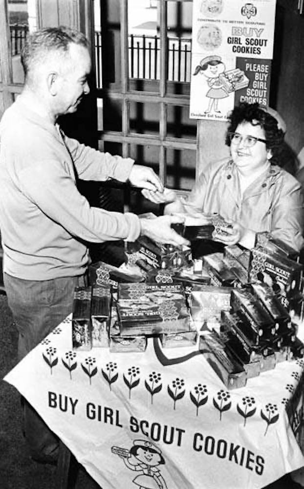 While the West Side YMCA building was built for boys between the ages of 12 and 18, the building also served other community purposes. In this 1964 photo, a woman is shown selling Girl Scout cookies to a man at the West Side YMCA. | Creator: Bill Nehez | Date: April 14, 1964 | Source: Cleveland Memory, Michael Schwartz Library Special Collections at Cleveland State UniversityDownload Original File