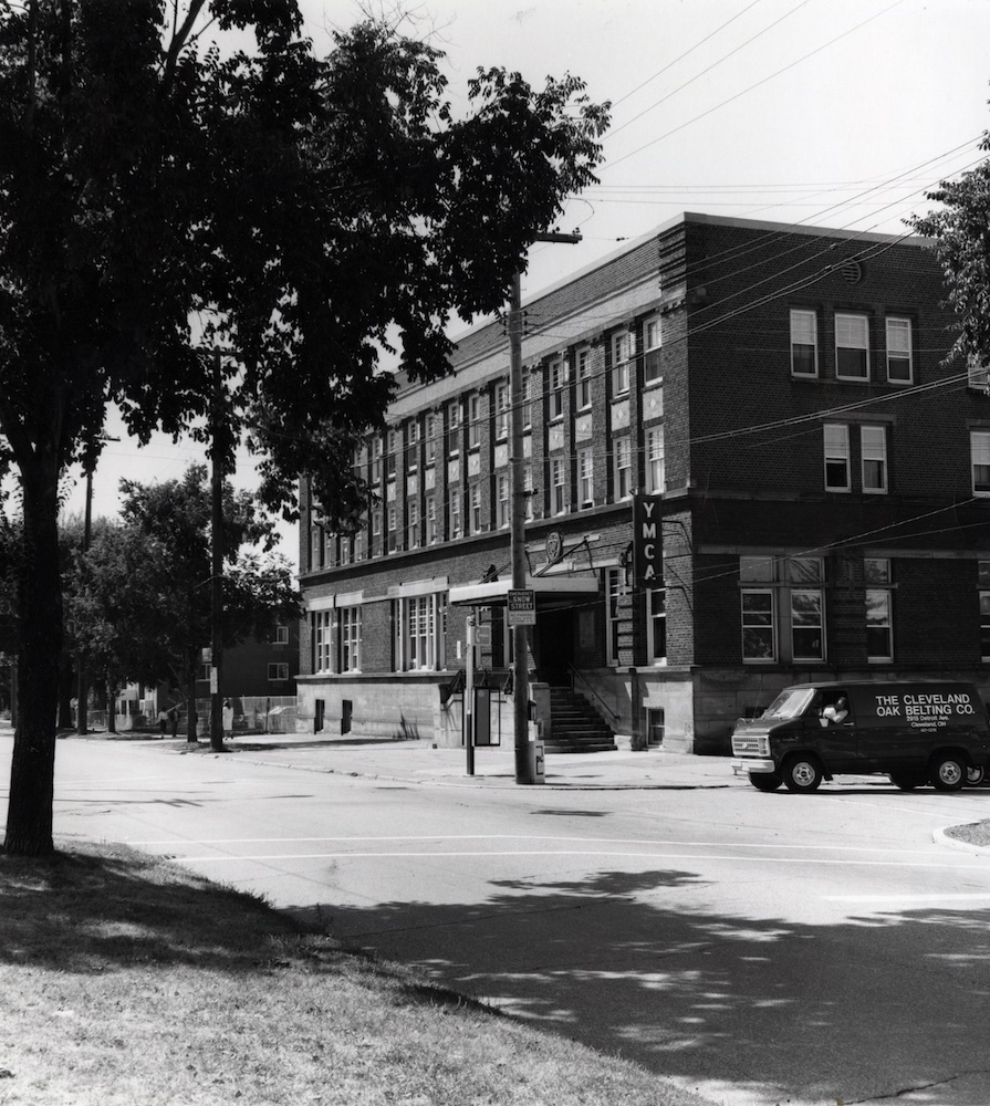 The West Side YMCA was substantially damaged by the 1953 tornado. The damage was repaired, but the roof was rebuilt differently, flat and without the sloped, Spanish tiled front. This undated photo is from circa 1980. | Source: Cleveland Public Library, Photograph CollectionDownload Original File