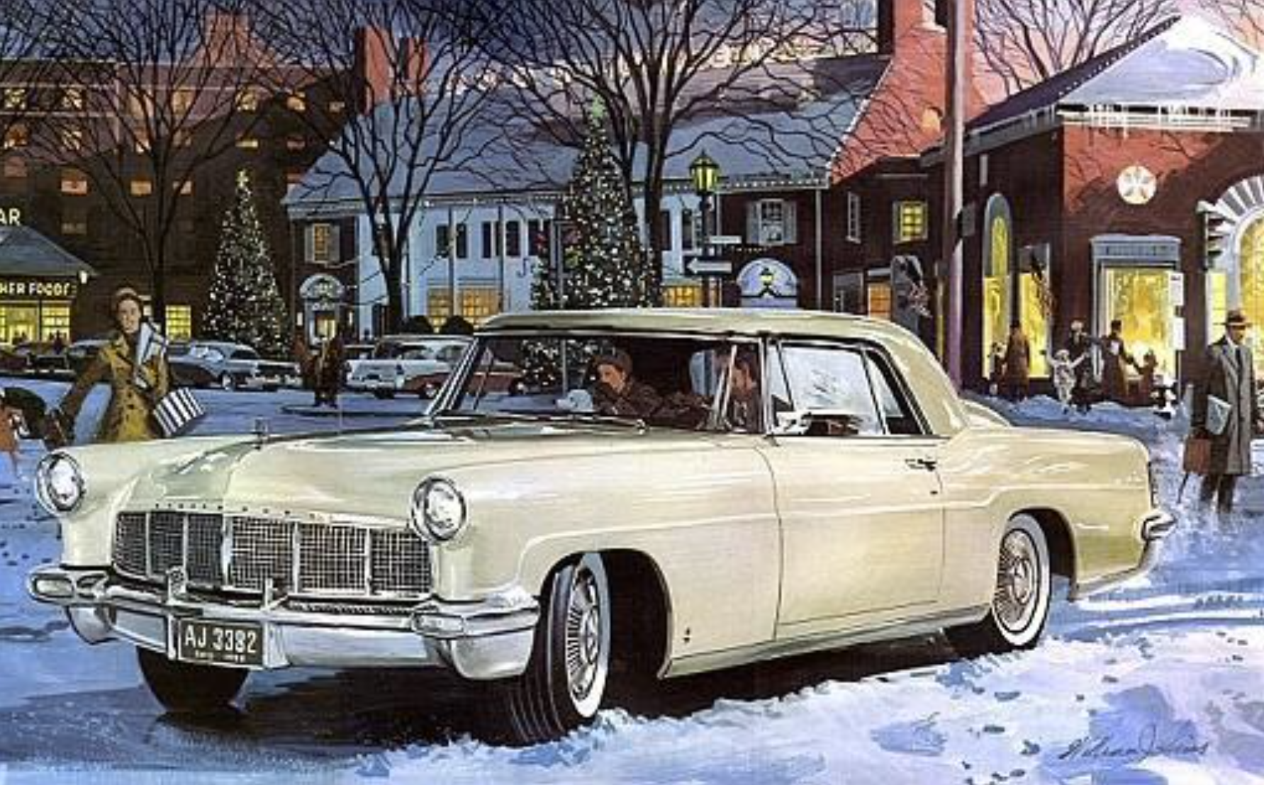 This ad for a 1956 Lincoln Continental Mark LI automobile features Stouffer's Shaker Square as its backdrop. | Date: 1956 | Source: Lincoln advertisementDownload Original File