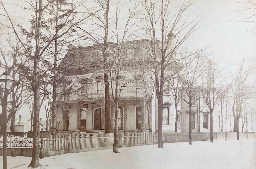 After John Bousfield's wooden ware manufacturing business became successful, his family in 1863 moved into this grand house located on the southeast corner of Franklin Avenue (Boulevard) and Duane (West 32nd) Street. John's business failed in 1875, and the family eventually lost the house to creditors in 1880. This undated photo of the house, in light of houses on West 31st Place seen in the background, was likely taken sometime between 1875 and 1880. | Source: Patrick Wilhelm, a third great grandson of John and Sarah BousfieldDownload Original File