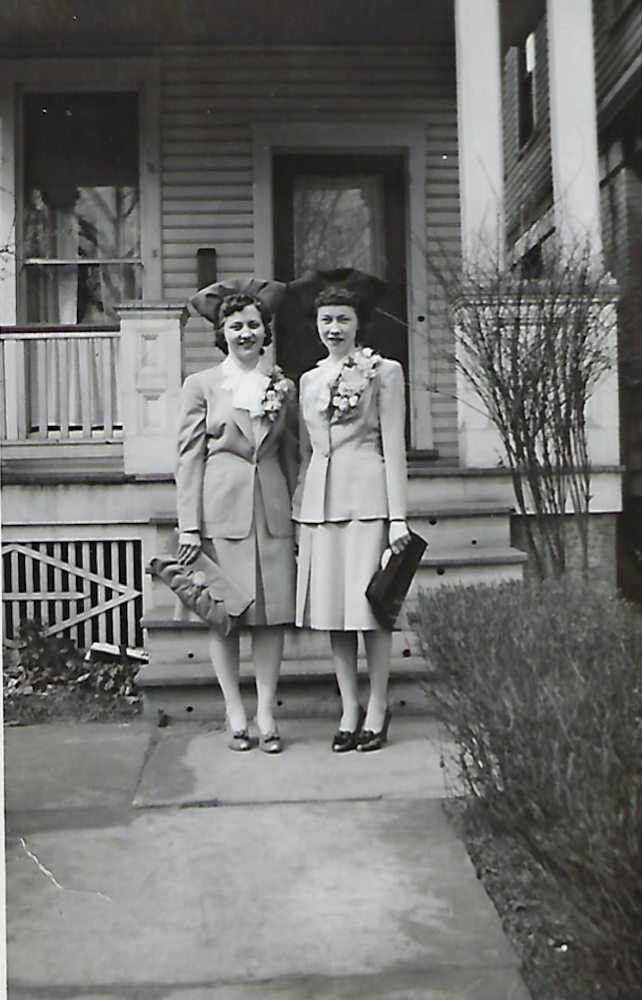 Easter - 1940s ID: 10751 | This file appears in: Henry Coffinberry House Yolanda (left) and Mary (right) Toth stand in front of their house at 3910 Franklin Boulevard. | Source: Chris Mishik, a granddaughter of Ernest and Mary Toth Download Original File SourceChris Mishik, a granddaughter of Ernest and Mary Toth "Easter - 1940s" appears in: Henry Coffinberry House