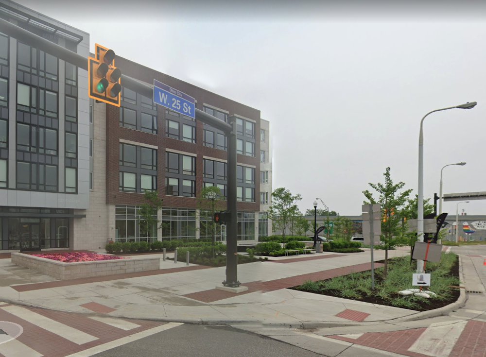 Masterson-Bivens Park no longer exists at the northwest corner of Detroit Avenue and West 25th Street. It has been replaced by a nicely landscaped plaza in front of The Quarter, a mixed-used four-story building erected by the Snavely Group, a Cleveland real estate developer. | Source: Google Maps, 2019Download Original File