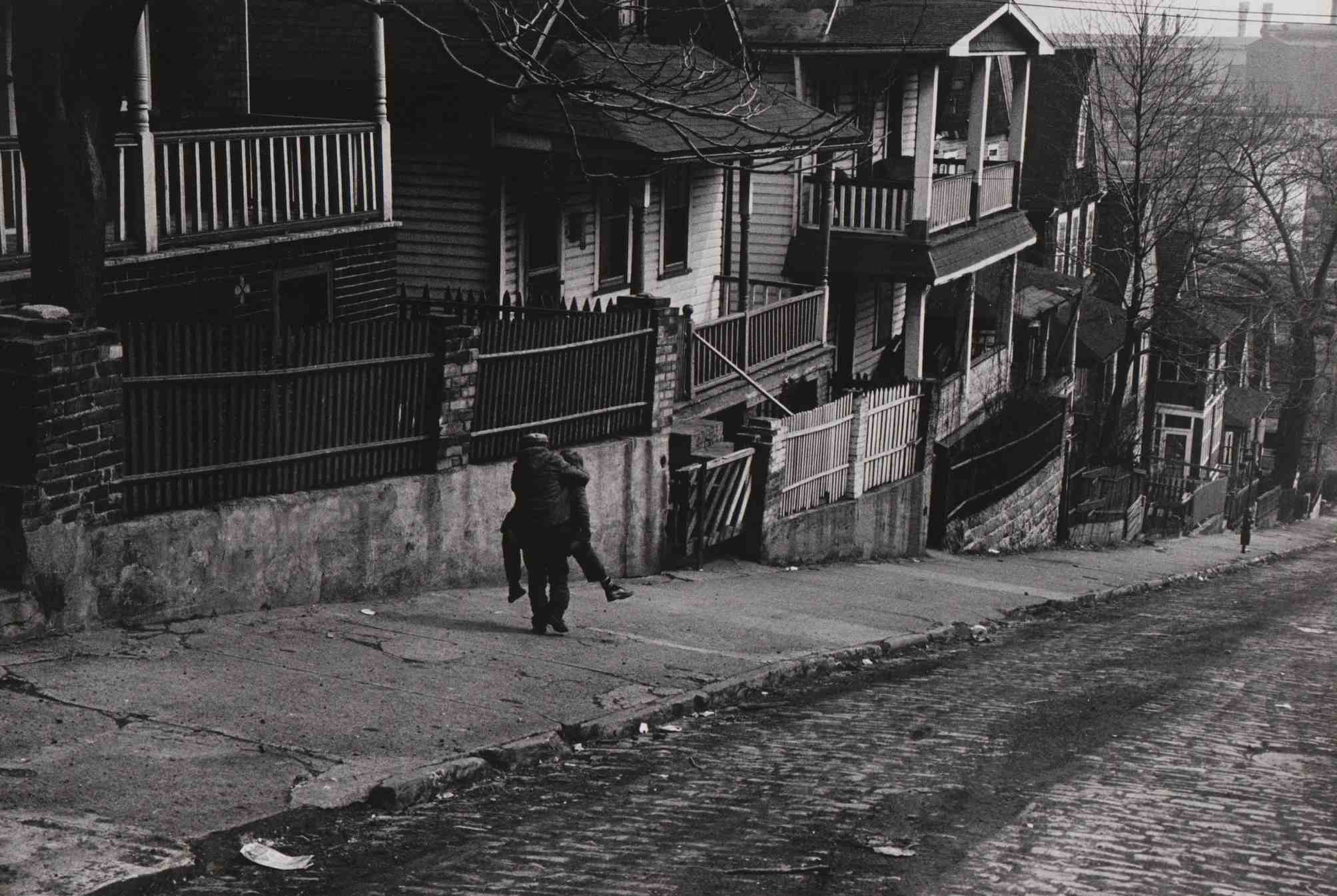 St. Olga Ave., 1965 ID: 1084 | This file appears in: The Landscape of Tremont This photograph taken on St. Olga Avenue in 1965 shows the decline in elevation between the heights of Tremont and the Cuyahoga valley below. The part of the street seen here was later demolished to create the Clark Freeway. Image courtesy of Cleveland State Library Special Collections Download Original File "St. Olga Ave., 1965" appears in: The Landscape of Tremont