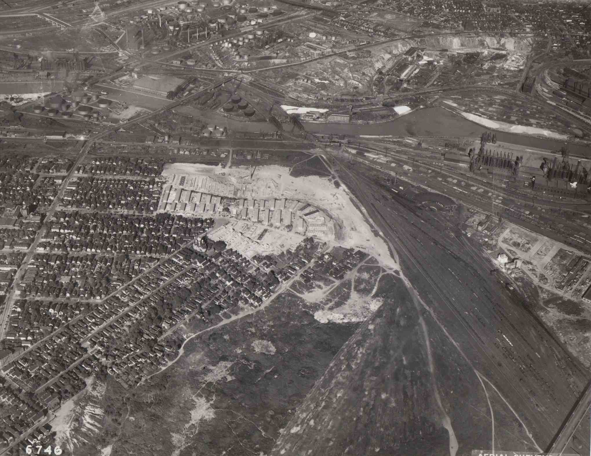 The public housing project was located in the southeast corner of Tremont, overlooking many of the industrial buildings lining the Cuyahoga River. | Source: Cleveland Memory Project, Cleveland State University Library Special CollectionsDownload Original File