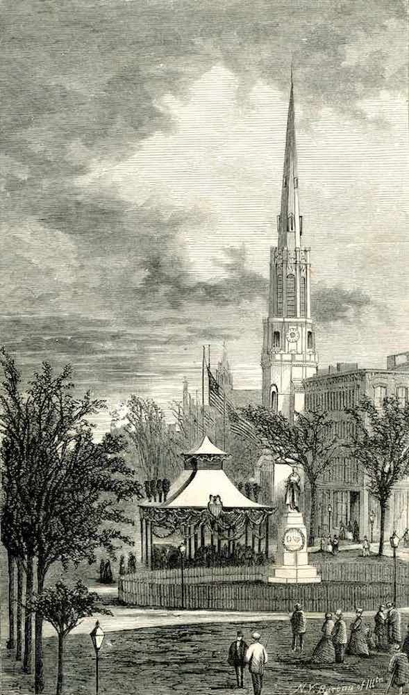 Etching of President Abraham Lincoln's funeral service, April 28, 1865, from Our Acre and Its Harvest, Historical Sketch of the Soldiers' Aid Society of Northern Ohio, Cleveland Branch of the United States Sanitary Commission | Date: 1865 | Source: Cleveland Public LibraryDownload Original File