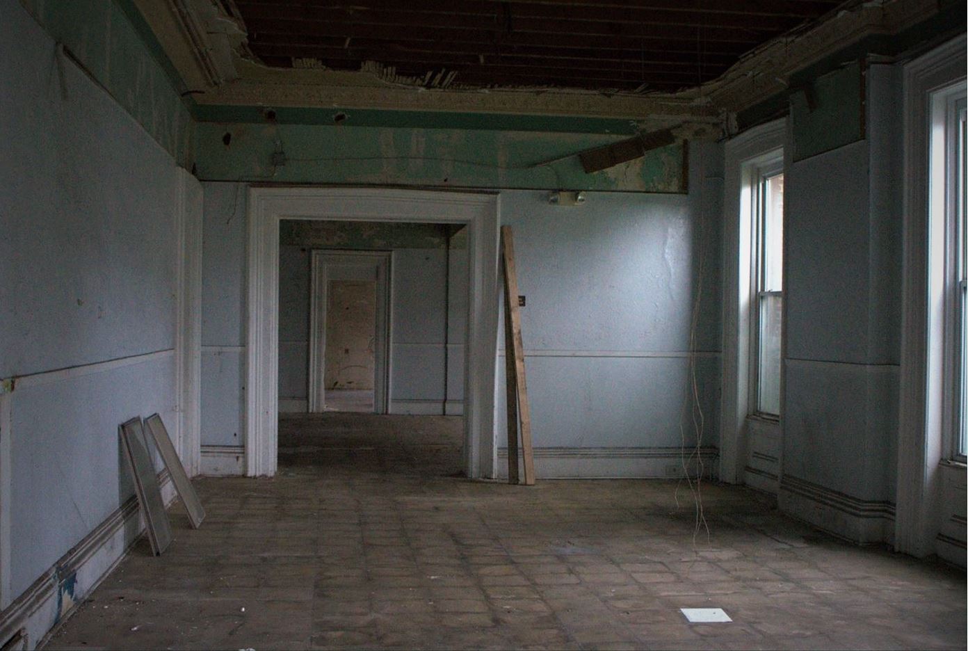 "Inside of the Cook-Bousfield Mansion, before restoration." appears in: Cook-Bousfield Mansion