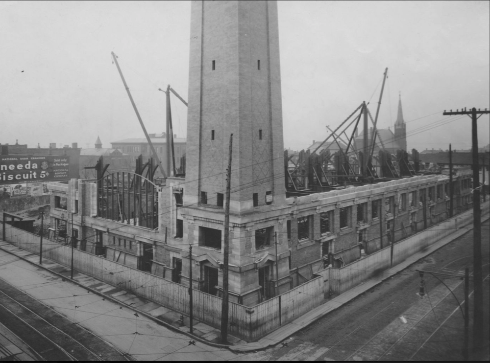 Going up! ID: 11061 | This file appears in: West Side Market This 1909 photograph shows the new West Side Market House designed by the Cleveland architectural firm of Hubbell and Benes under construction. | Source: Cleveland Public Library, Photograph Collection Download Original File SourceCleveland Public Library, Photograph Collection "Going up!" appears in: West Side Market