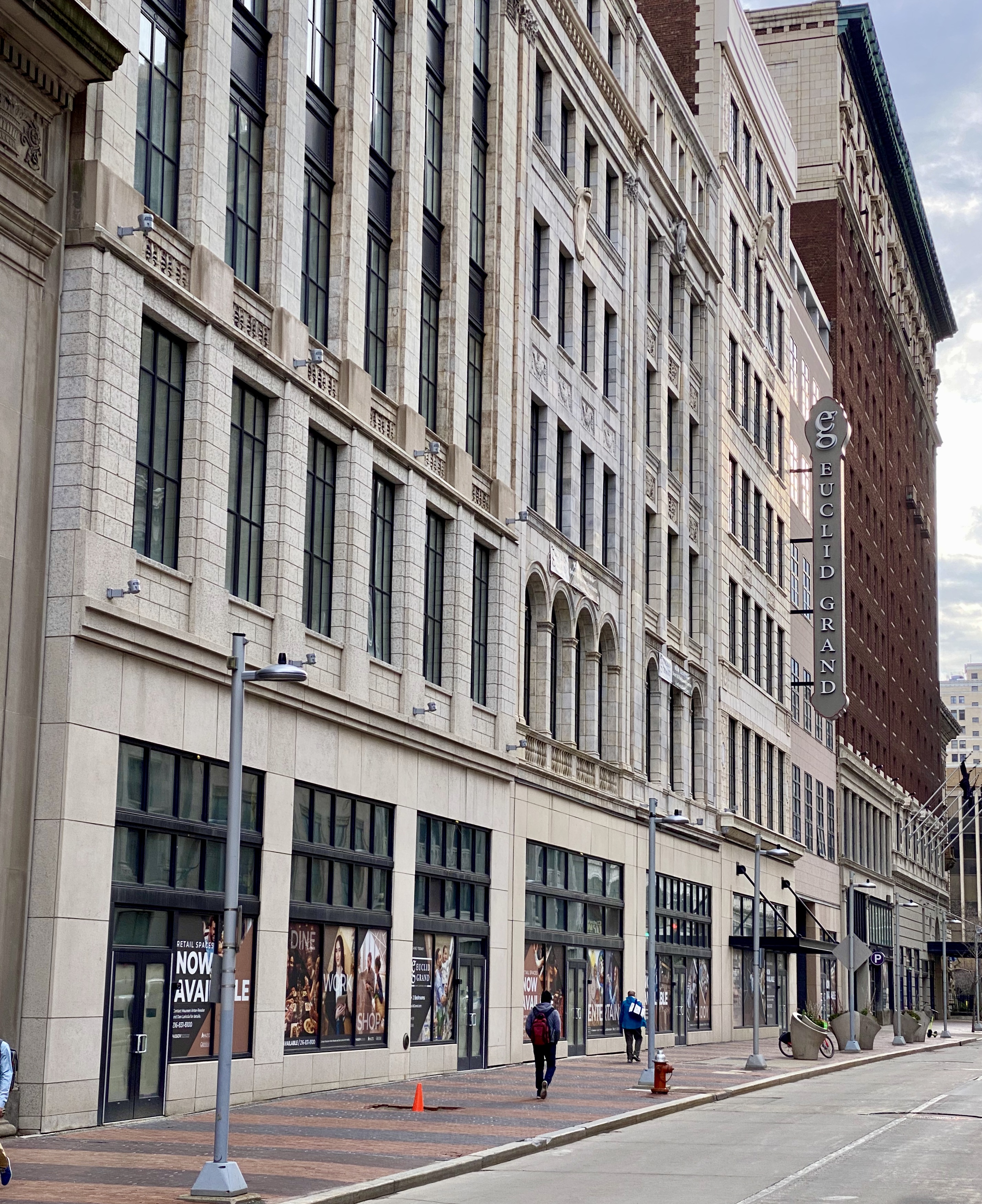 In 2021, the historic John Hartness Brown Building re-opened as the Euclid Grand, with 240 residential apartment units, 20,000 square feet of retail space, and an underground parking garage. This photo was taken in April, 2022. | Source: Jim DubelkoDownload Original File