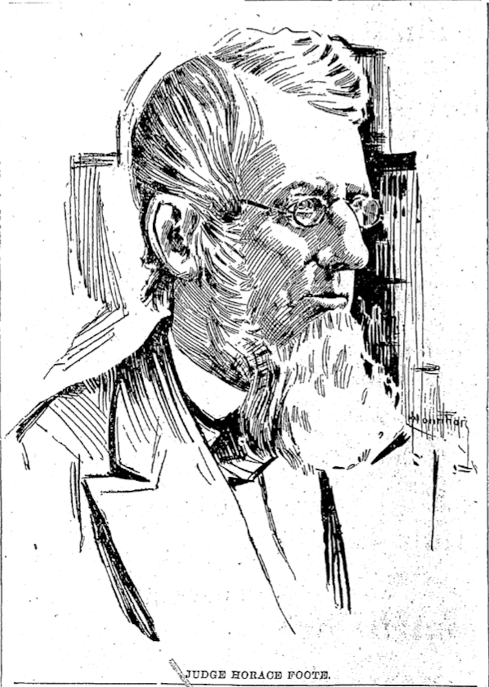 The Common Pleas Judge who presided over the 1858 civil case of David Pollock versus City of Cleveland, his decision in Cleveland's favor cleared the City's title to the land upon which Market Square Park is located today. This sketch of Judge Foote was taken from a news article about him that appeared in the Cleveland Plain Dealer on February 12, 1899, some 15 years after his death. | Source: Cleveland Public Library, Newspaper CollectionDownload Original File