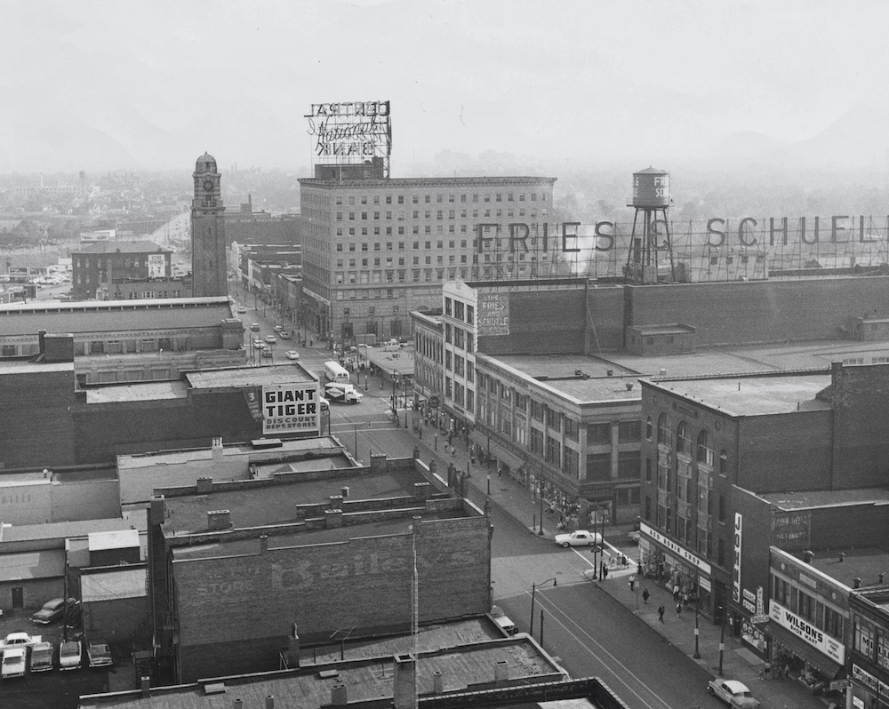 This photograph presents a view of West 25th Street near Lorain Avenue in 1963. If you look closely, you can see the former shelter house across from the West Side Market on the west side of West 25th. By this year, the shelter house had been converted into a commercial building that the City had most recently leased to the owners of Kaase Bake Shop. | Source: Cleveland Public Library, Photograph CollectionDownload Original File