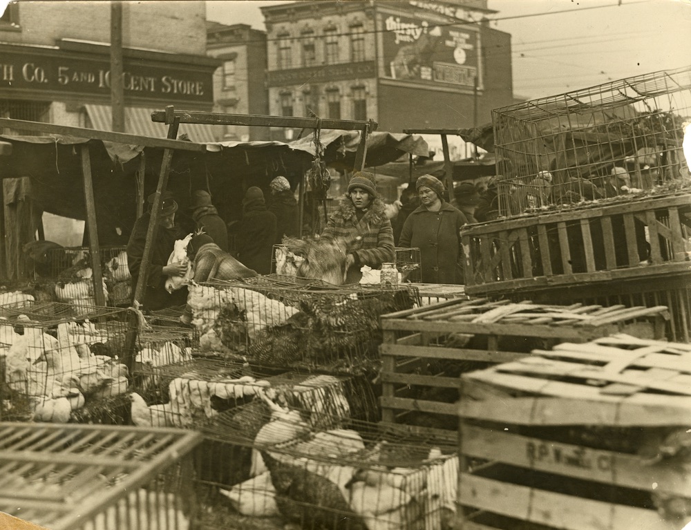 This photo of Market Square, taken in 1928, shows that, while the Pearl Street Market House was razed in 1915, open air market activities still continued outdoors on the Square for decades. In the background, on the left, you can see part of the Woolworth Five and Dime Store which then stood on the northwest corner of Market and West 25th Streets. | Source: Cleveland Public Library, Photograph CollectionDownload Original File