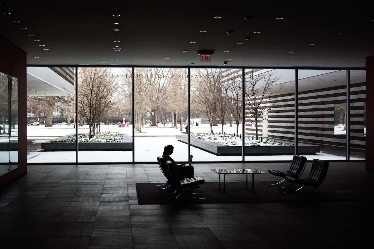 Marcel Breuer received his commission to add a wing to the Cleveland Museum of Art shortly before his Cleveland Trust commission. The Breuer addition, completed in 1971, was artfully incorporated into the CMA's massive expansion that used a soaring glass atrium and flanking gallery buildings to connect Breuer's building with Hubbell & Benes's original marble 1916 building. | Creator: Tim Evanson | Date: February 10, 2017 | Source: Flickr, CC BY-SA 2.0