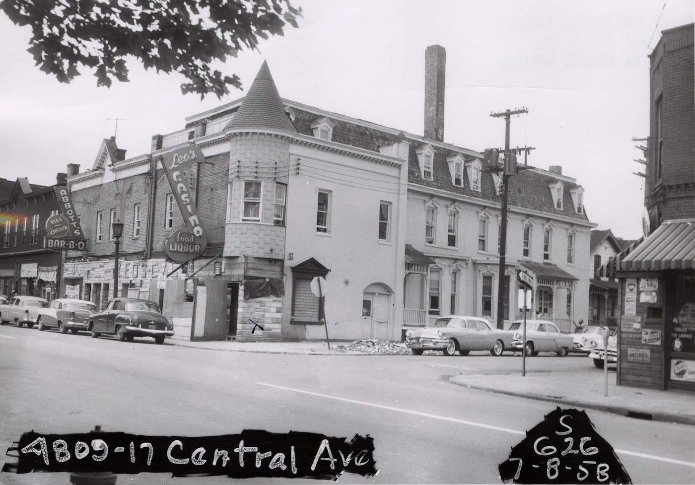 Leo's Casino at the corner of Cedar and E. 49th with Abbotts Bar-B-Q to its west | Date: July 8, 1958 | Source: Cleveland Public Library, Photograph CollectionDownload Original File