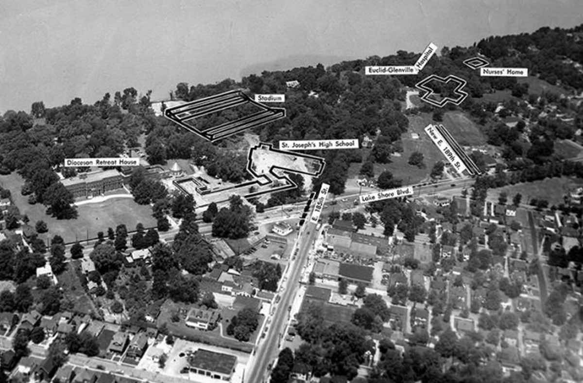 Aerial View of East 185th and Lakeshore Blvd. ID: 11250 | This file appears in: The Shore Clubs of Collinwood The shore clubs were located at E. 185th and Lakeshore where St. Joseph’s High School is in this photo. | Creator: Herman Seid | Date: June 30, 1950 | Source: Cleveland Memory Project Download Original File CreatorHerman SeidSourceCleveland Memory ProjectDateJune 30, 1950 "Aerial View of East 185th and Lakeshore Blvd." appears in: The Shore Clubs of Collinwood