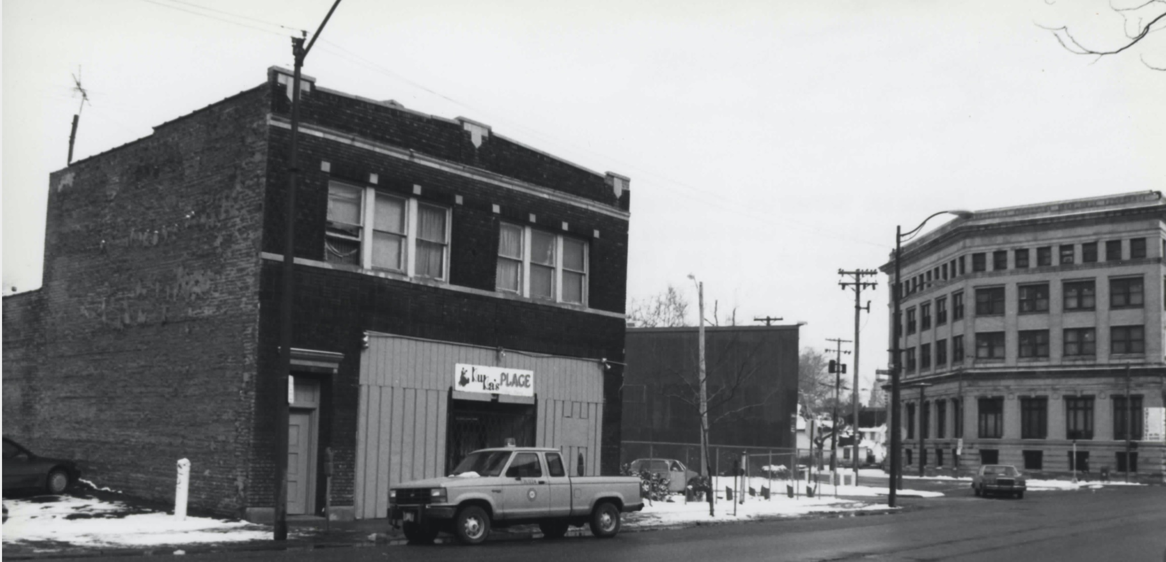 In 1993, Cleveland Planning Commission Intern Don Petit was tasked with the assignment of taking photographs of buildings on Lorain Avenue between West 32nd and West 58th Streets in connection with the City's National Register of Historic Places (NRHP) application to create a Lorain Avenue Commercial Historic District within that section of Lorain Avenue. He arrived too late for the historic Walker and Roegge Building designed by Cramer and Fugman and the Michael Gerstacker Drugstore Building both of which appeared in an earlier photograph in this array. He was also too late for another building just to the west of the Walker and Roegge Building that was designed by Cramer and Fugman in 1888 for Joseph Machke, a grocer and real estate developer. All three of these nineteenth century buildings had been razed by the time Petit appeared on the scene. All that was left in the general vicinity was the two-story building shown in the foreground of this photo, which was likely erected in the 1920s. In 1993, it was home to Kuka's bar. Even that building has since been razed. | Source: 1993 City NRHP application for the Lorain Avenue Commercial Historic DistrictDownload Original File