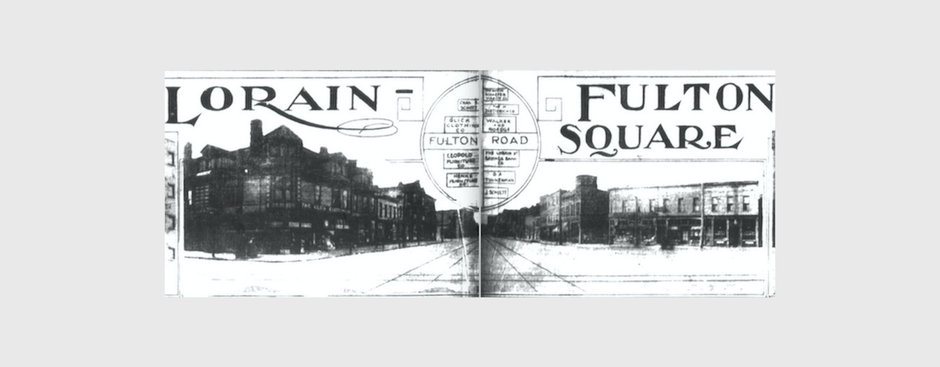 By 1914, the intersection of Lorain Avenue and Fulton Road was known as Lorain-Fulton Square. Earlier in the decade, Cleveland City Council had renamed a number of city diagonal intersections "squares," following a trend from New York City. It was during this era that the intersection of Euclid and Huron Avenues was named "Euclid Square," and then a decade later, when the theaters began to go up nearby, renamed "Play House Square." It is unknown whether Cleveland officially named this west side intersection "Lorain-Fulton Square," or whether it simply popularly became known by that name. Note the height and massing of commercial buildings on both sides of Lorain Avenue west of the intersection. Many of these buildings are no longer standing today. This photograph appeared in an ad placed by Lorain-Fulton Square businessmen in the Cleveland News edition of December 21, 1914. | Source: Craig BobbyDownload Original File