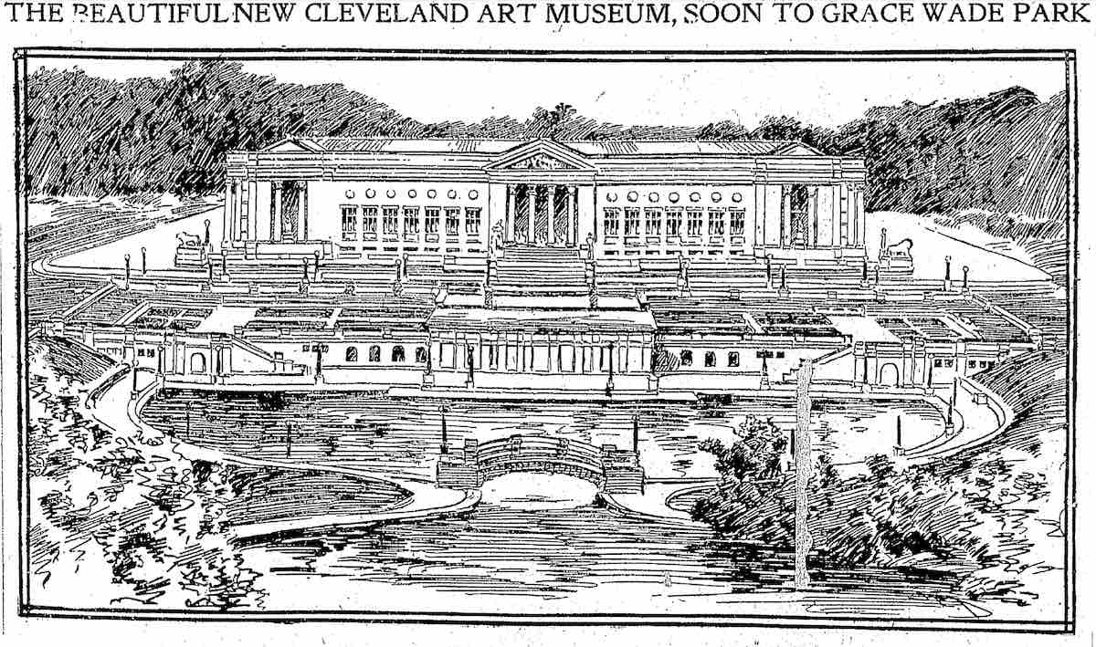 The original museum building is shown in this architectural rendering. Like many cities, Cleveland was enamored with the classically inspired architecture that the City Beautiful movement, itself inspired by earlier ancient and Renaissance styles. | Date: January 17, 1909 | Source: Cleveland Plain DealerDownload Original File