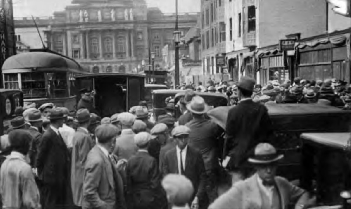 During the 1925 Tong Wars, the police conducted multiple raids on Chinatown. While the intention may have been to stop the wars themselves, all Chinese in Cleveland soon became a target for arrest. This photo faces north on Ontario Street. The Cuyahoga County Courthouse stands at the end of the block. | Date: September 24, 1925 | Source: Cleveland Memory, Michael Schwartz Library Special Collections at Cleveland State UniversityDownload Original File