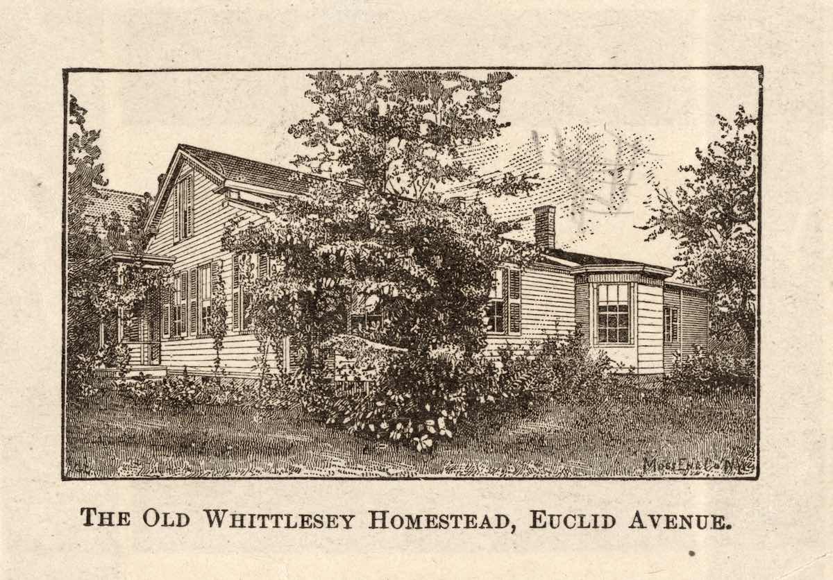 Charles Whittlesey's Residence ID: 11624 | This file appears in: Ancient Mounds in Cleveland Charles Whittlesey's homestead located on the south side of Euclid Avenue, west of Dunham Avenue (present-day East 66th Street). | Source: Cleveland Public Library Photograph Collection Download Original File SourceCleveland Public Library Photograph Collection "Charles Whittlesey's Residence " appears in: Ancient Mounds in Cleveland