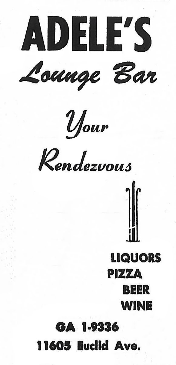 This is the earliest known ad for Adele's, which appeared in the Western Reserve University's student newspaper frequently from the bar's opening in 1954 until its demise fifteen years later. | Source: Reserve Tribune, November 11, 1954Download Original File